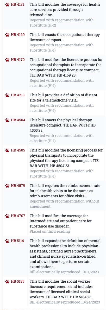 If passed, HB 4579 will require the reimbursement rate for telehealth visits to be the same as reimbursements for office visits. The House is working on some logistical issues with this bill and is hopeful it will get a floor vote this week. Contact your legislator to support this bill.