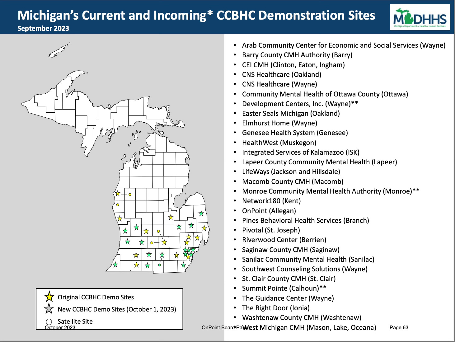 In Washtenaw County, CCBHC funding has been combined with funding from the voter-approved Public Safety and Mental Health Preservation Millage. Find out more at Washtenaw.org.